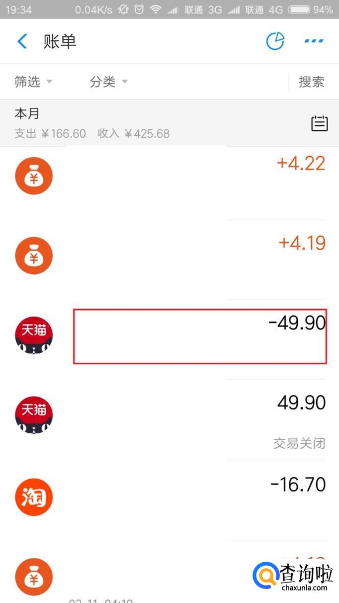 接下来,在账单页面中,选择已经购买的订单内容选项。