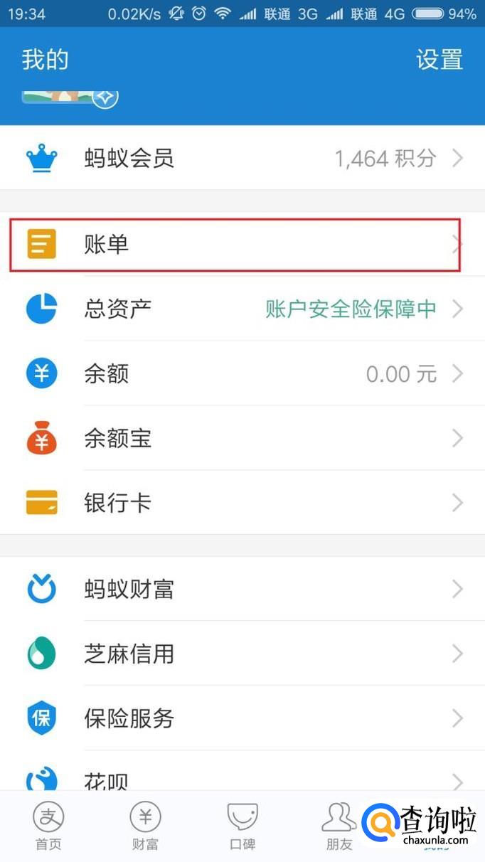 接下来,进入个人中心页面之后,点击“账单”菜单选项。