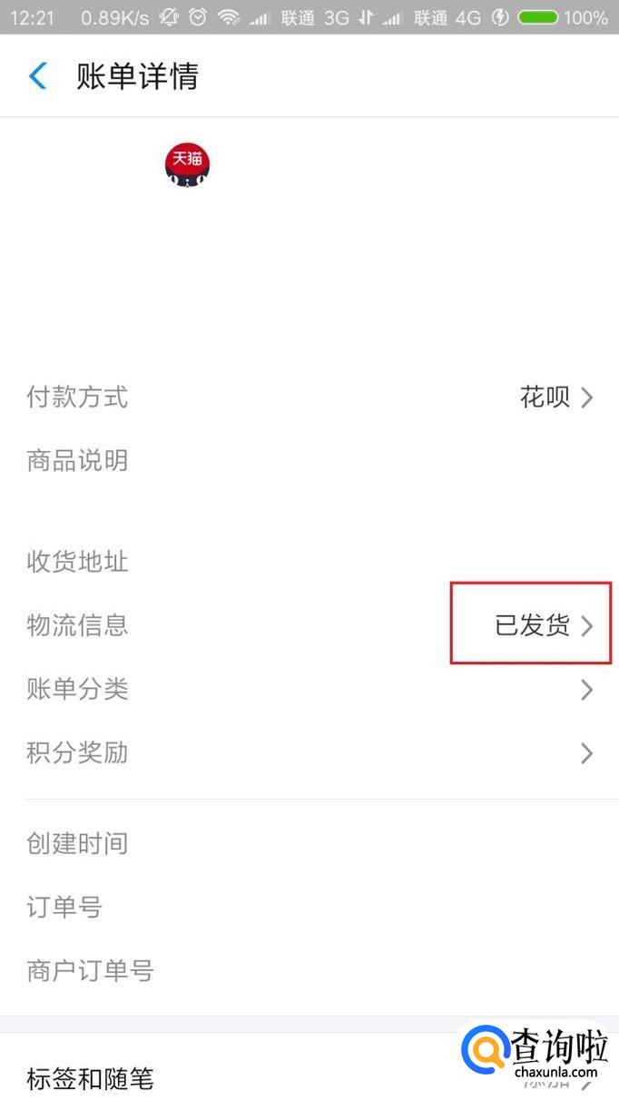 接下来,在打开的详细页面中,选择“物流信息”选项。