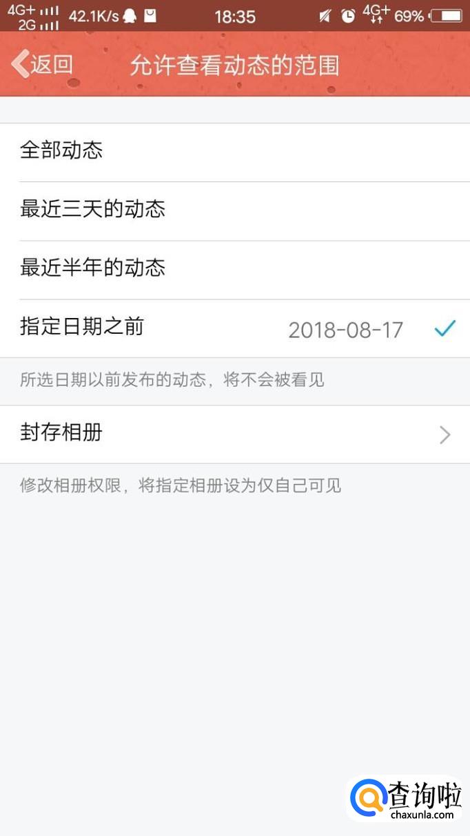 最后,点击允许查看动态的范围,再点击最近三天的动态即可。