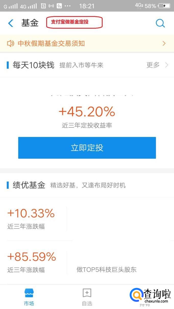 基金定投有时候会被称为懒人投资方法,但是并不是说你设置每周或者每月买入之后就不看了,毕竟扣的都是自己的钱。所以选择一个合适的软件或者手机app做定投比较好,以便随时都能查看和买卖,比如支付宝、微信等,现在定投基金的费率绝大部分都是1折,别买贵的就行。