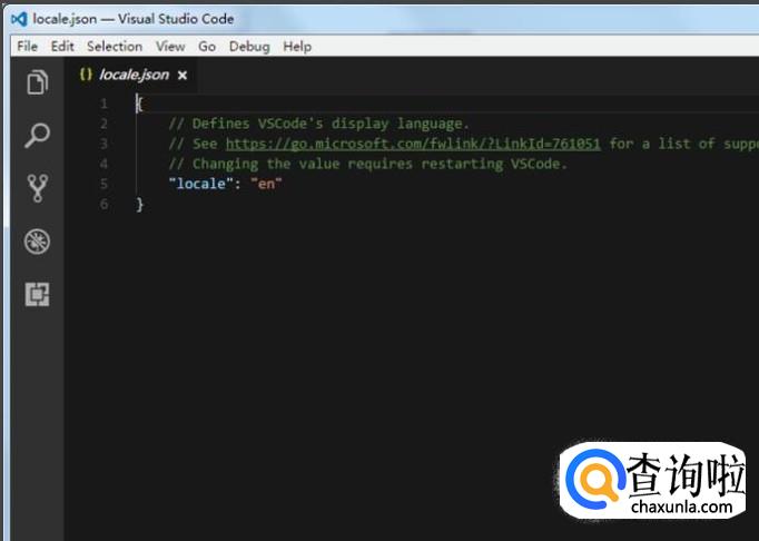 然后会默认打开vscode的配置文件,这里en就代表的是英文环境,如下图所示