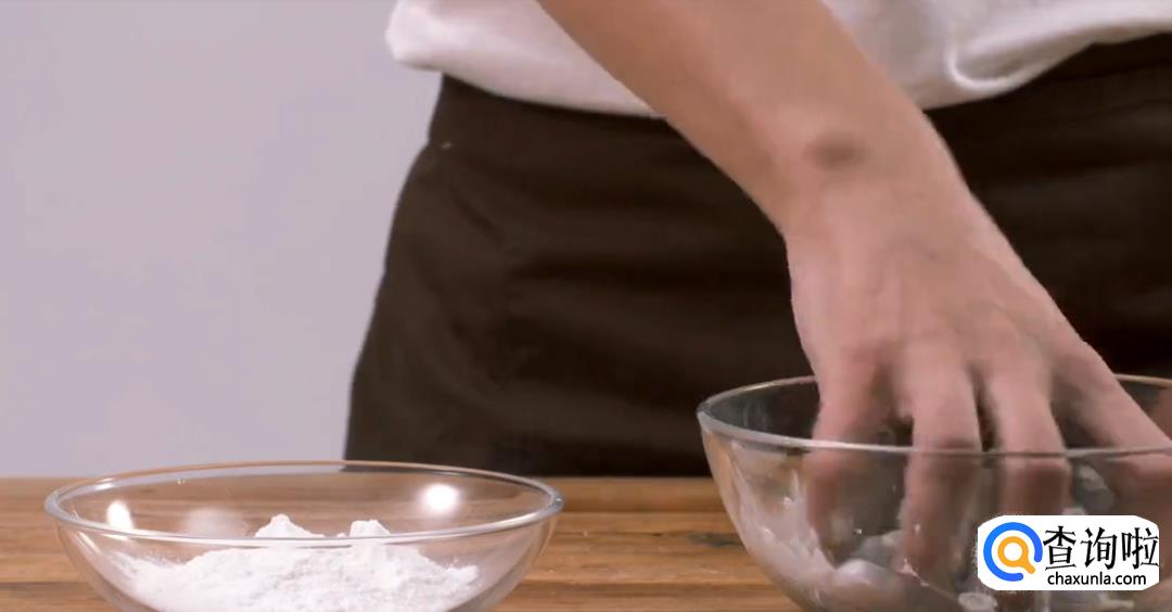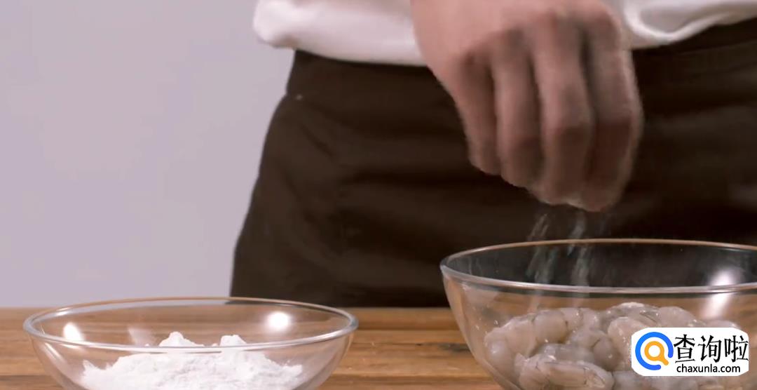在虾肉中加入少许生粉,抓均匀。