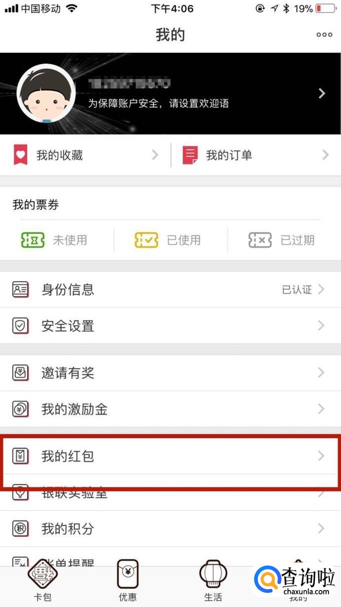 接着点击我的红包,如下图所示。