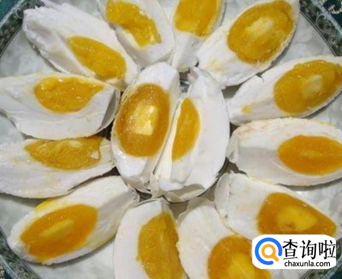五香咸鸭蛋,取花椒、桂皮、茴香、生姜、精盐,用等量水煮沸20分钟,放入鸭蛋浸泡四十天的样子即可煮熟食用