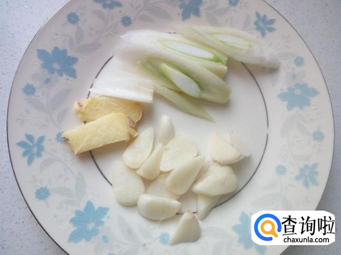 葱,姜,蒜切片,红干椒切成段,准备好花椒,八角,备用。