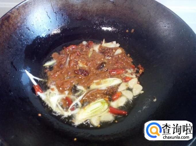 放入两匙儿豆酱翻炒一下,然后放入料酒,白糖,醋,酱油,一匙儿耗油,少许盐(慎重放盐,豆酱很咸),烧成酱汁。