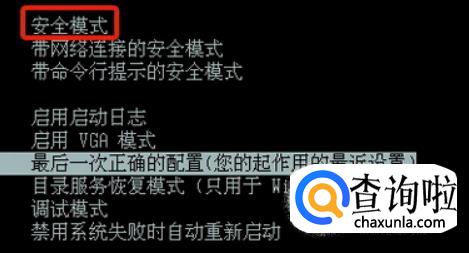 第二个我们先启动电脑,在系统启动画面快出现时按键盘上的“F8”快捷键,进入启动菜单选项,点击进入“安全模式”。成功进入,蓝屏的问题就是你最后安装了什么软件或者驱动造成,把最后一次安装的程序或者驱动程序卸载掉重启系统。如果还是出现蓝屏就看下面的方法。