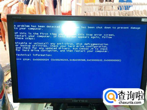 电脑开机蓝屏,代码stop:0x00000024怎么办?