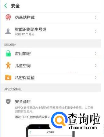 首先在设置里找到安全,点击进入