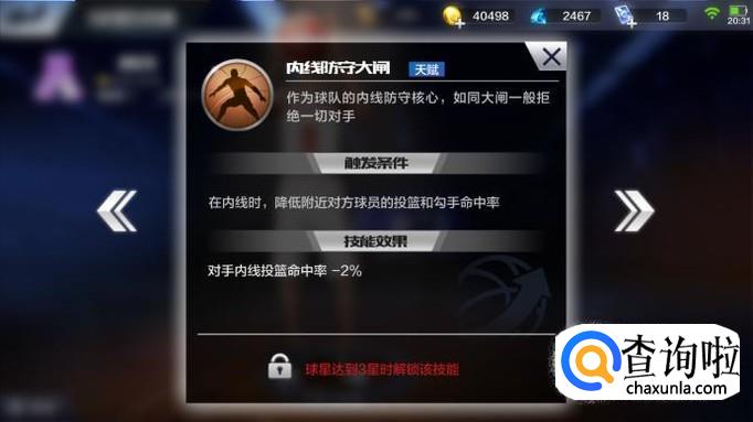 内线防守大闸让周琦在内线为所欲为,降低对方投射命中率,这简直不能更美好,有时候发现对方篮筐下都没把球搁进去,就是这个属性的影响。