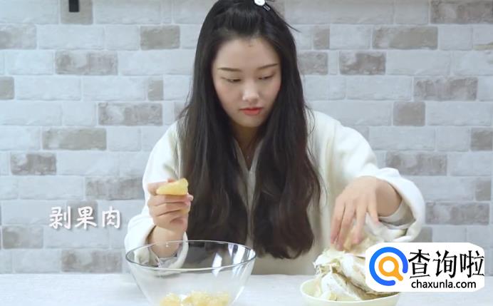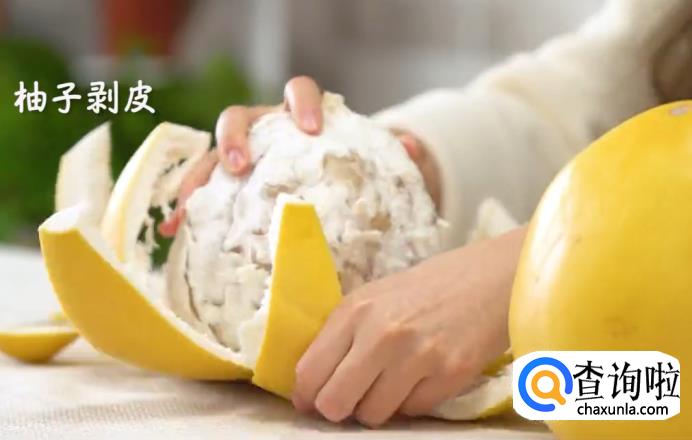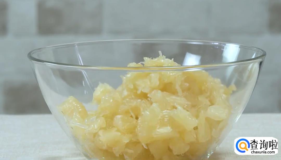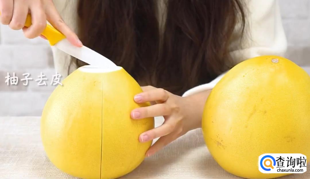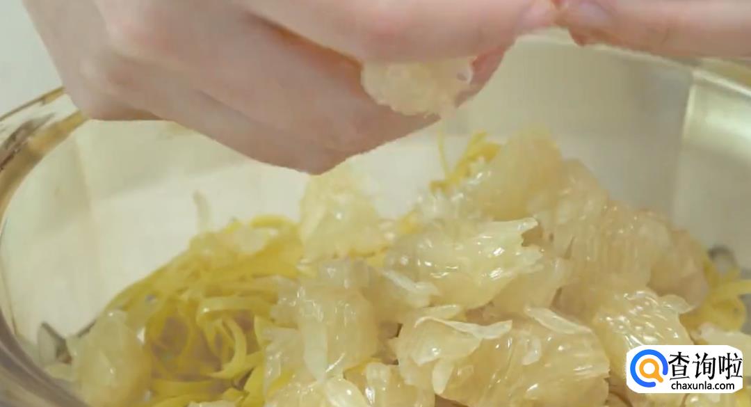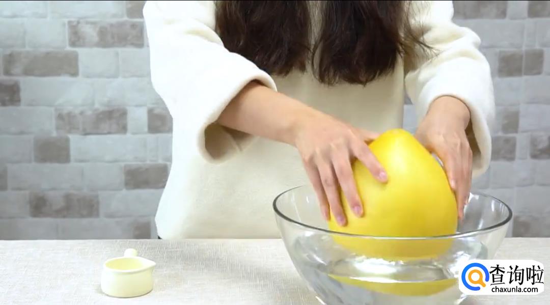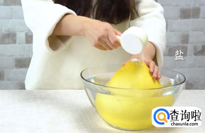 用盐将柚子皮搓洗一下,洗掉柚子皮表面的果蜡。
