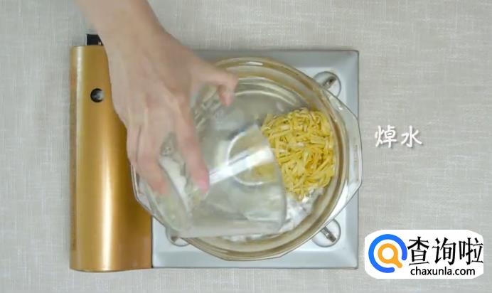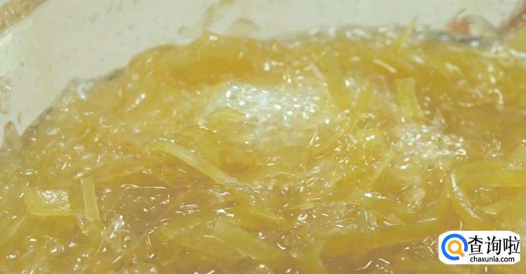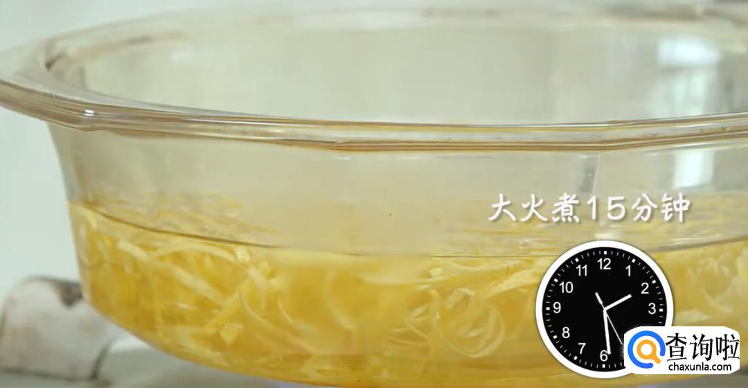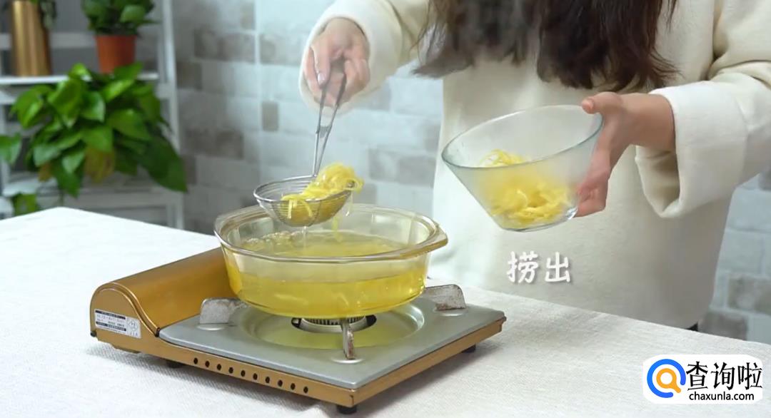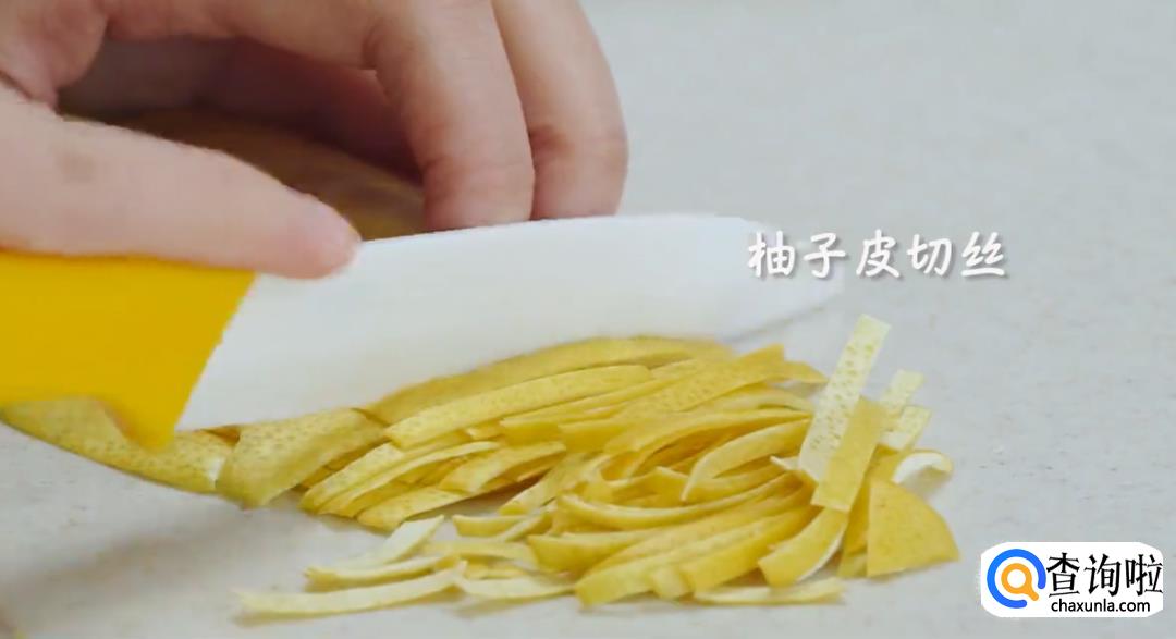 用盐腌过的柚子皮需要焯两次水并沥干,去除苦味。