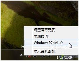 使用鼠标右键打开其列表。找到Windows移动中心。