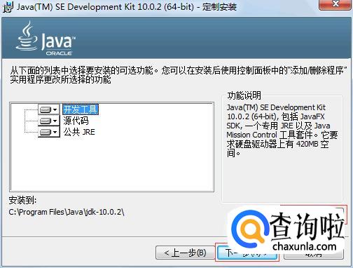 单击“下一步”按钮,打开定制安装对话框。选择安装的 JDK 组件。
