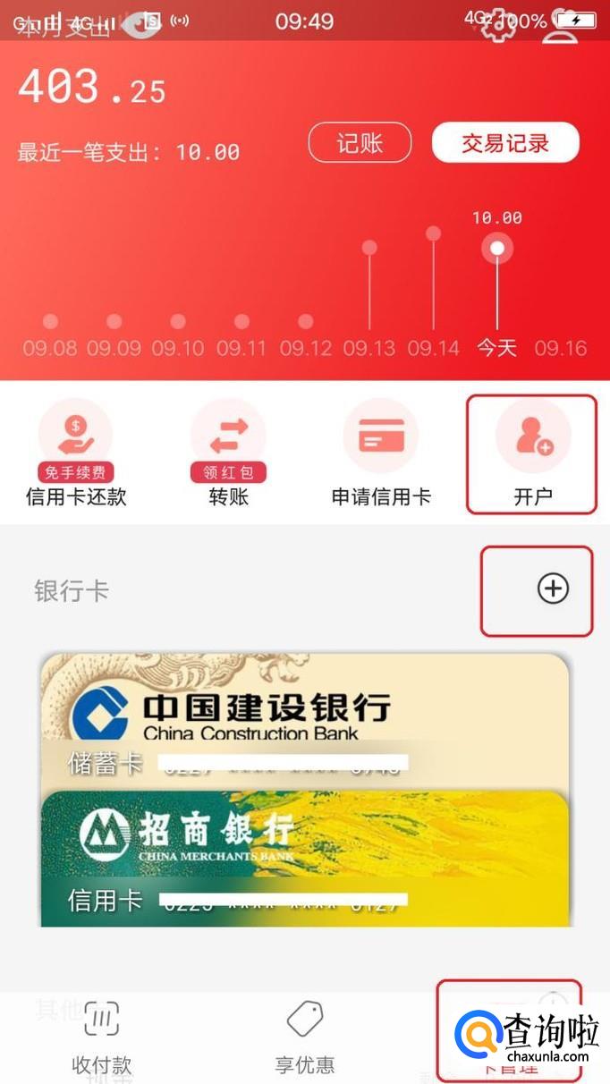 安装完成之后,打开该app,我们需要先点击右下角“卡管理”,绑定一张带有“闪付”标志的银联卡才能使用。第一次使用还需要点击图中“开户”,并绑定银行卡。