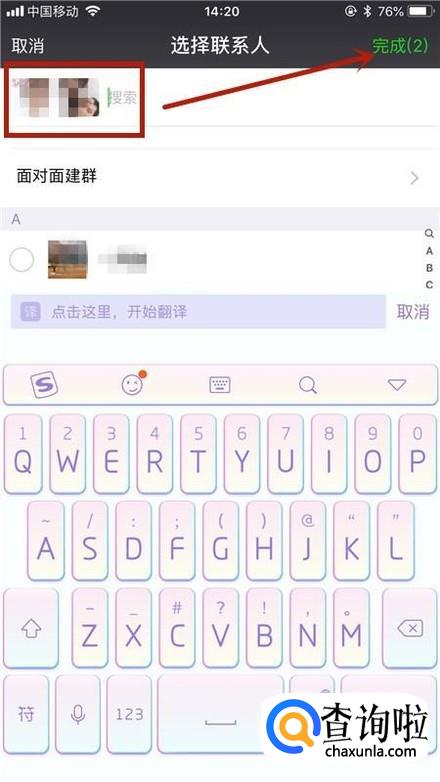 然后选择你要发起群聊的好友并点击完成,如下图所示。