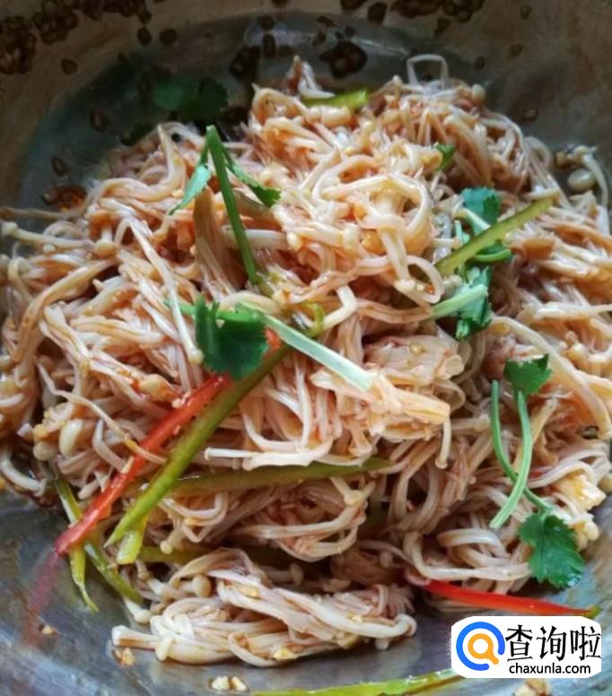 最后装入盘中,美味的红油金针菇就制作完成啦!