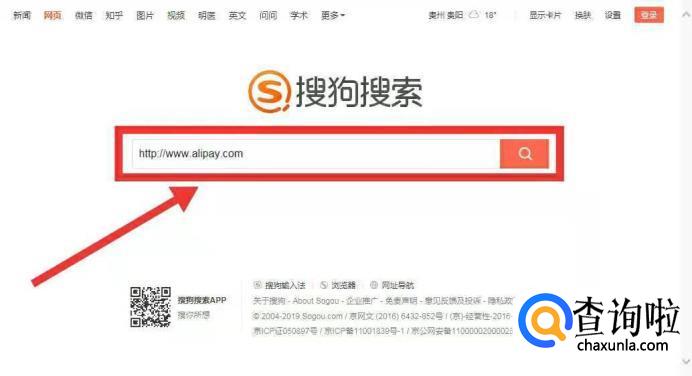 在搜索输入框内输入支付宝官网“http://www.alipay.com”。