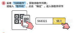 进入取件页面后,可采用“扫码取件”获取待取件列表,也可输入手机短信接收的“取件码”,点击 “确定”,进入待取件环节。