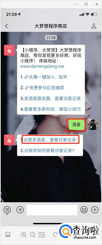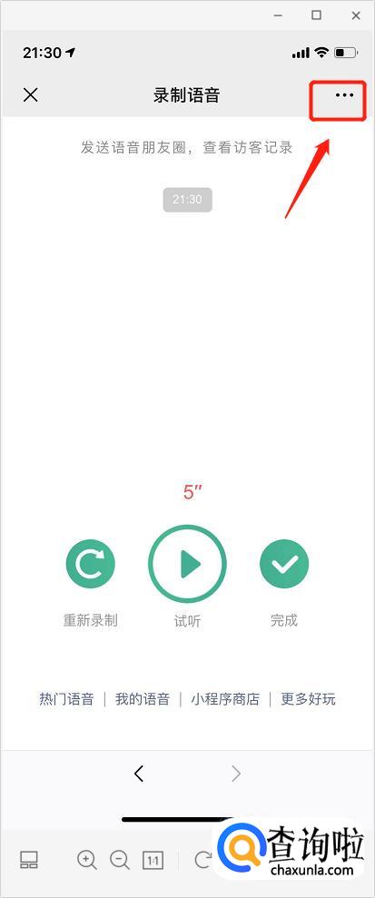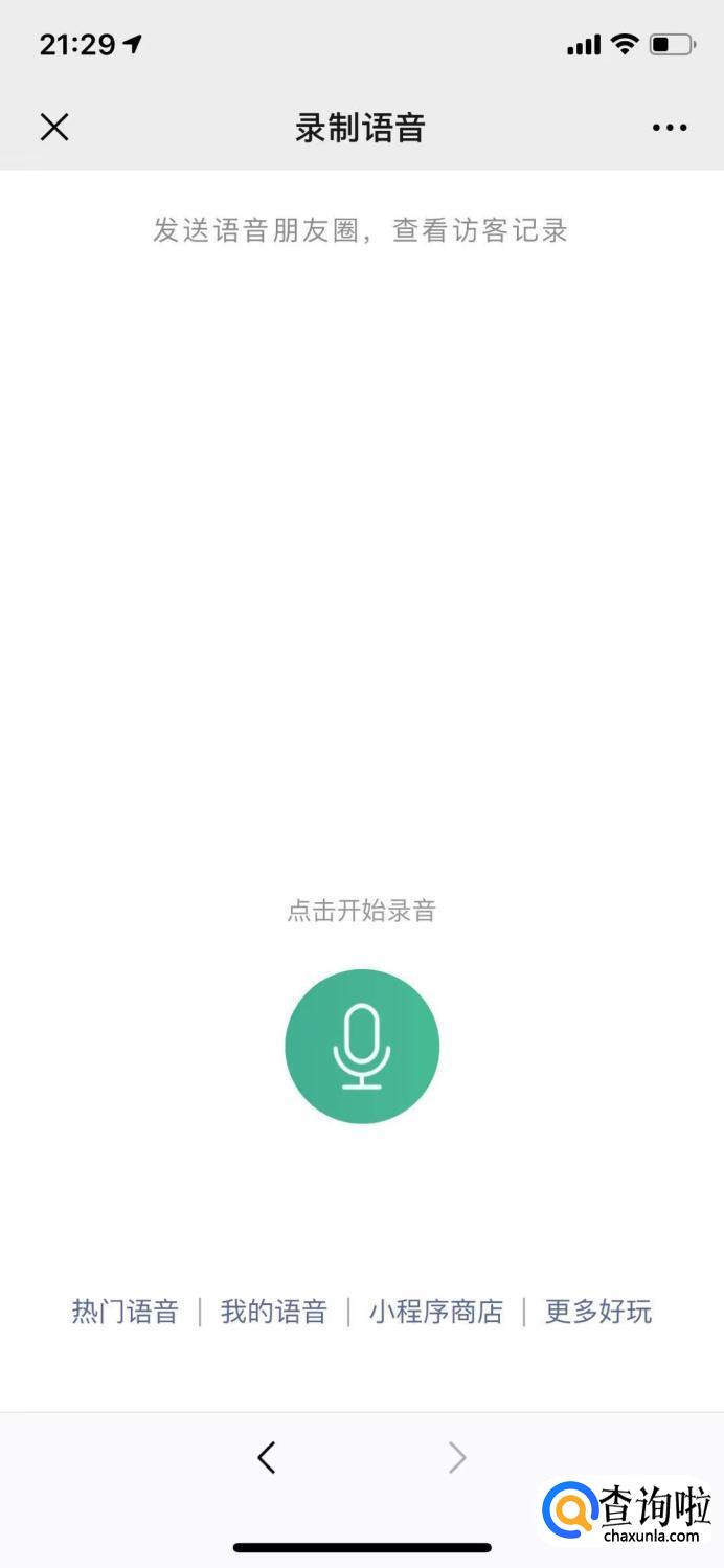 发送”语音“,它会回复你”点我发语音朋友圈“,你把它点开。