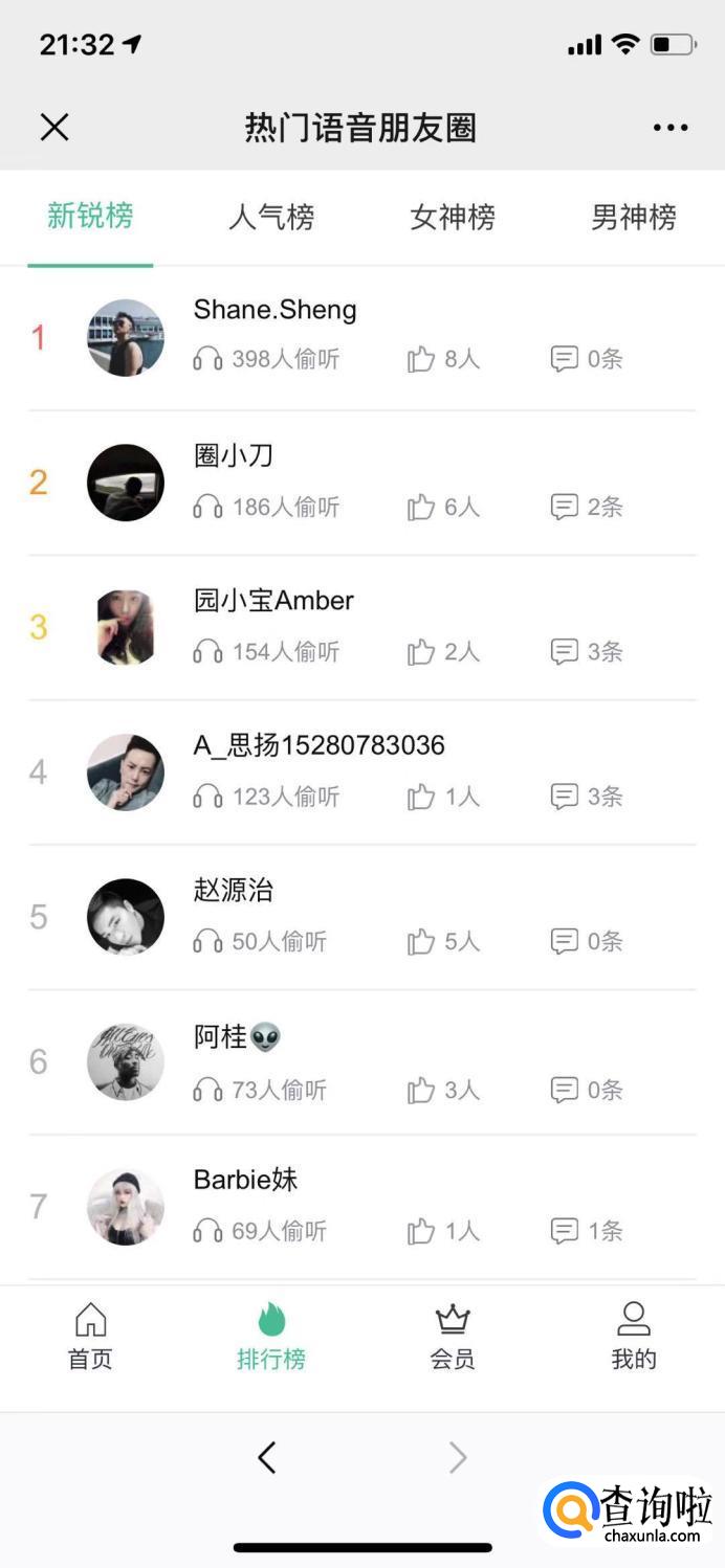 广场上的语音都是按照偷听量来排序的。