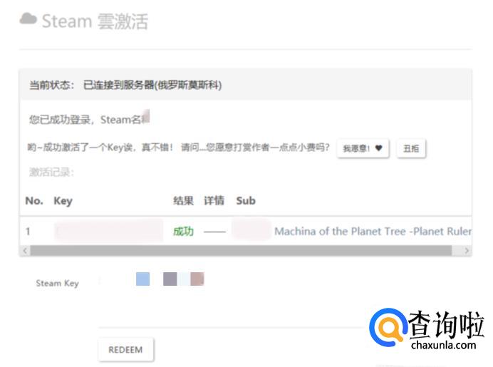 输入完相关信息后,我们点击下面的REDEEM,就可以成功激活我们的steam key。