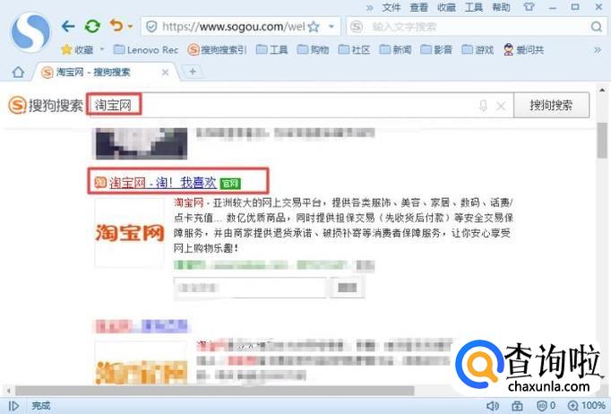 进入浏览器之后,我们在搜索框中输入淘宝网,之后我们按回车键,然后我们点击弹出网址中的官网;