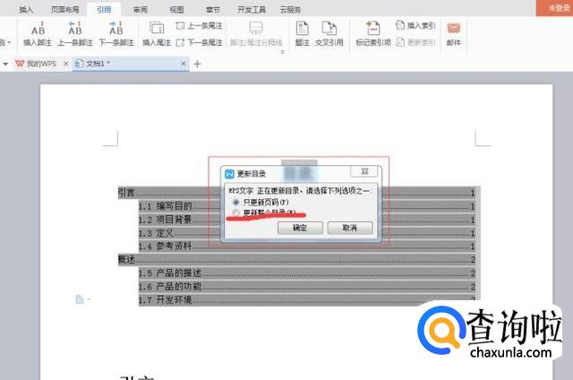 我们要是更改文档里面的内容,那么目录也同样需要更新下。可以选择全部目录位置,然后鼠标右击,点击【更新域】,会弹出一个【更新目录】窗口,有2个单选按钮,【只更新页面】和【更新整个目录】,一般我们会选择【更新整个目录】,然后点击确定即可。