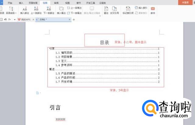 一般【目录】这两个字为【宋体、小二号,居中】显示,目录条为【宋体,5号】,要修改下字体样式。
