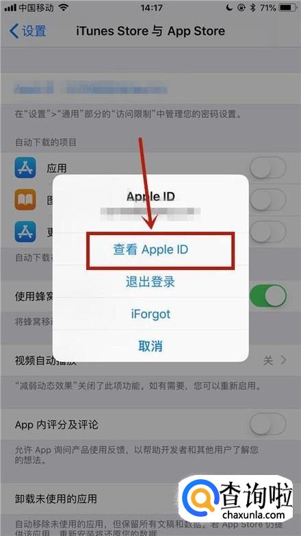 如下图,点击查看appleid