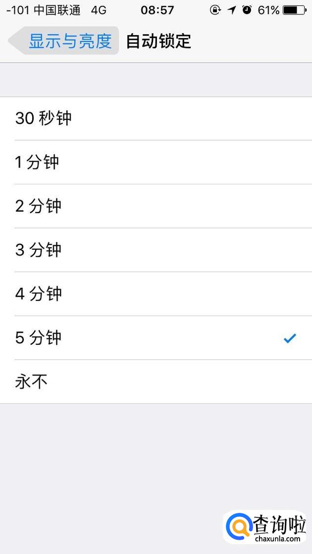 接着我们点击自动关闭,选择适合的时间即可。如果自己需要长期使用手机的话可以选择关闭时间较长。