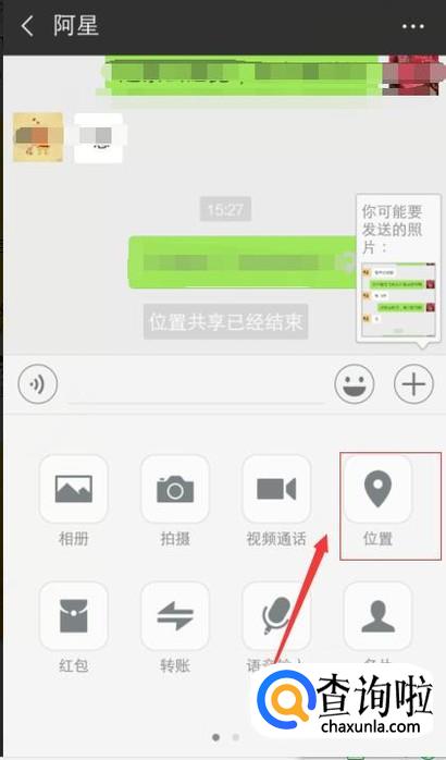在好友聊天窗口下面,点击圆形加号,选择位置;