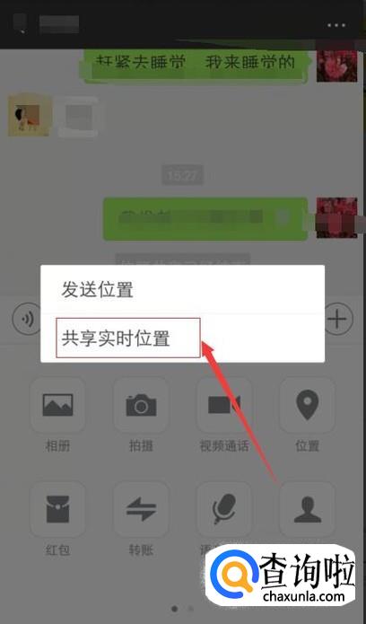点击共享实时位置,这个需要对方同意,就能查看好友的位置了;
