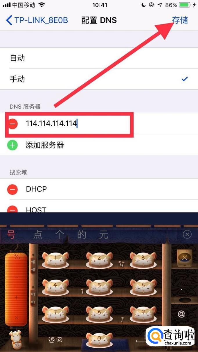最后输入“114.114.114.114”并点击存储就可以了。