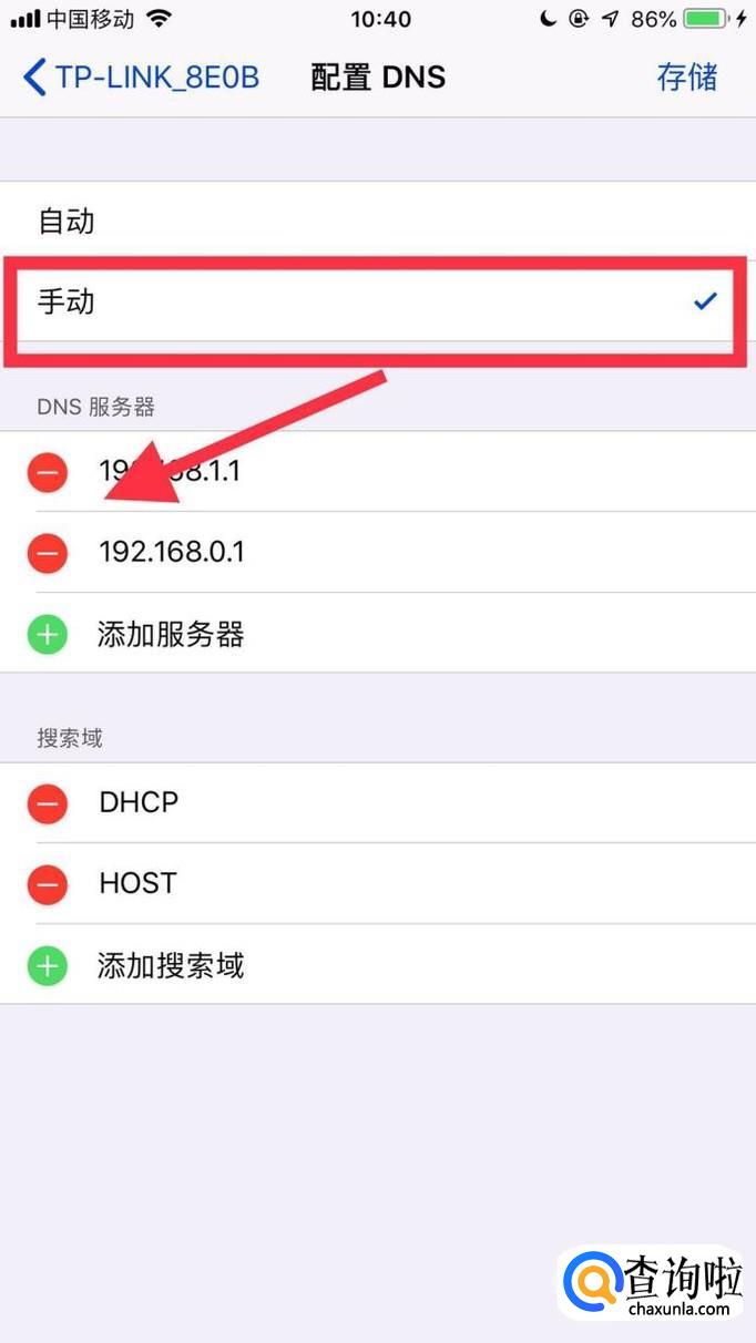 接着选择手动并将原有的DNS配置删除。