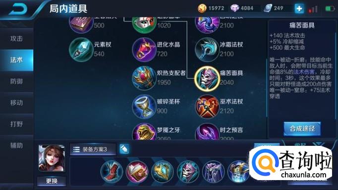 痛苦面具。可能有的人会说这件装备比较鸡肋,为什么呢?它只加140点的法强,但是实际上它是很强势的,5%的冷却时间和500的最大生命值,更重要的是它的被动是按比例减血,打坦克很有用。