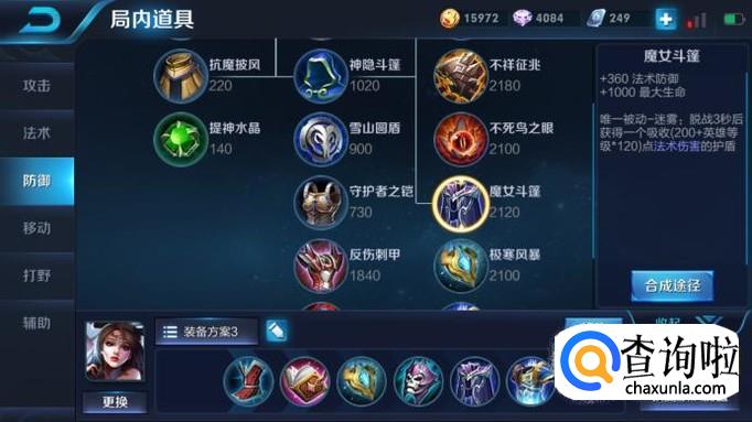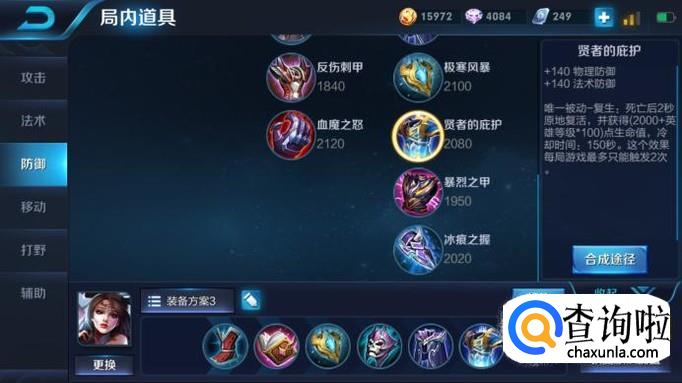 接下来的两件装备就是魔女斗篷和贤者的庇护了,魔女斗篷可以获得一个可以抵抗法术伤害的护盾并且增加高额的法术防御,贤者的庇护俗称复活甲,可以让玩家死后复活,继续战斗,让本来没有多少血的敌人防不胜防。