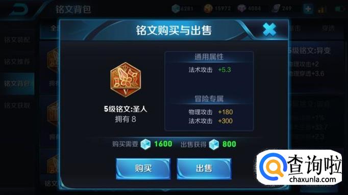 红色铭文:圣人。这个铭文可以增加5.3点法术伤害,其实对于一个法师来说,铭文并没有太多的选择空间,最主要的就是堆上法强,而貂蝉很大部分的伤害来自于她的真实伤害,因此没太不要出法术穿透的铭文。