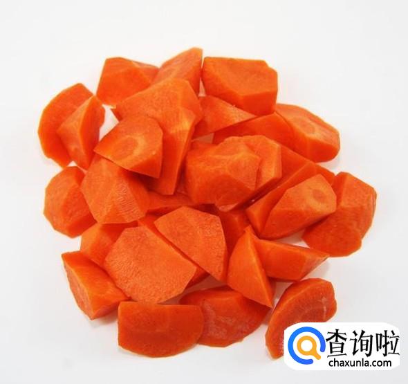 胡萝卜用刀刮掉外皮,清洗干净,然后切成小块儿,装盘备用