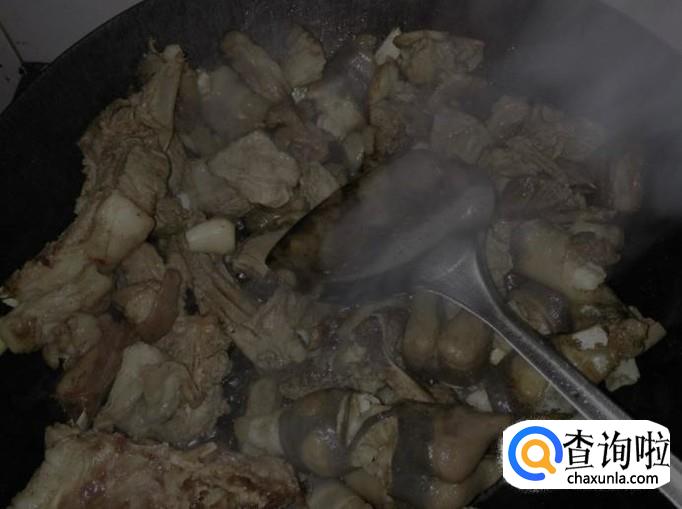 在锅中加油,待油8分热时,将羊肉捞起,倒入锅中煎炒,待其变色时,加入料酒,老抽,老姜末,爆炒。