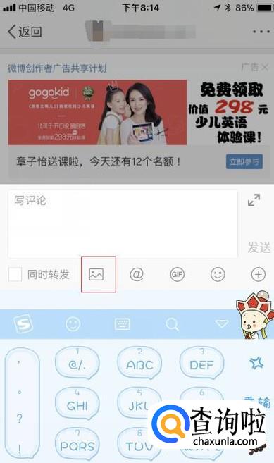 点击图片标志,然后从手机里面选择你要发的照片,见下图
