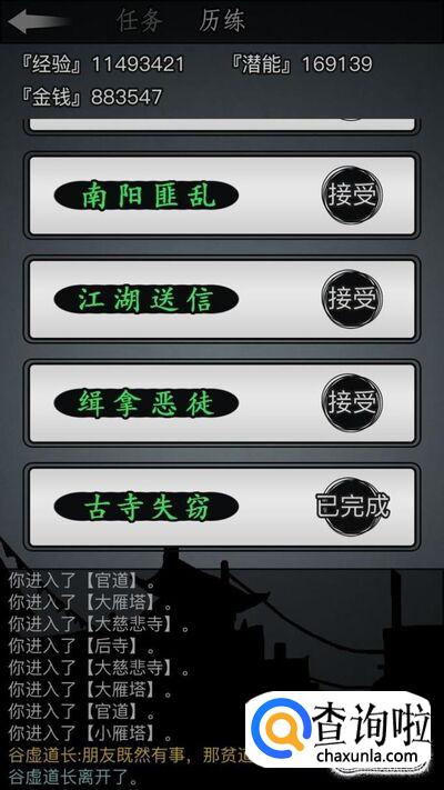 这个游戏最大的一个特点就是挂机,挂机我们可以获得任务等级经验还有潜力,潜力是用来升级的,所以挂机是非常重要的,我们除了做历练任务的时候,挂机不能停止。