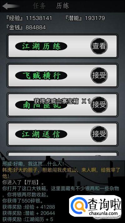相应的这个任务我认为是最难的,因为越到后面飞贼的数量会增多,但是这个任务获得的包裹里面的好东西比较多可以开出丹药之类的东西。