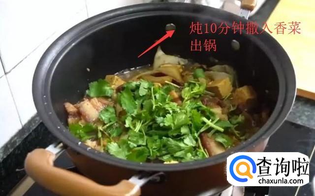 最后炖10分钟我们就可以熄火,撒上香菜准备出锅了,如下图所示