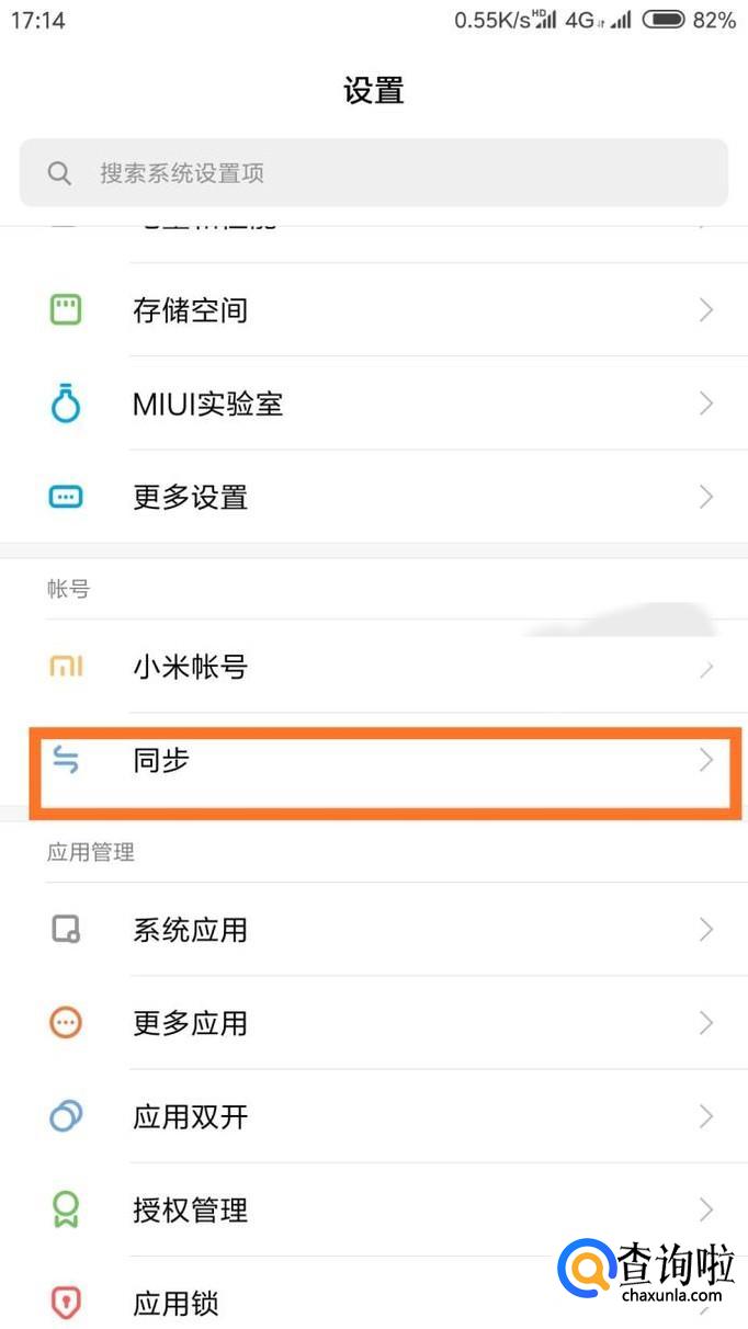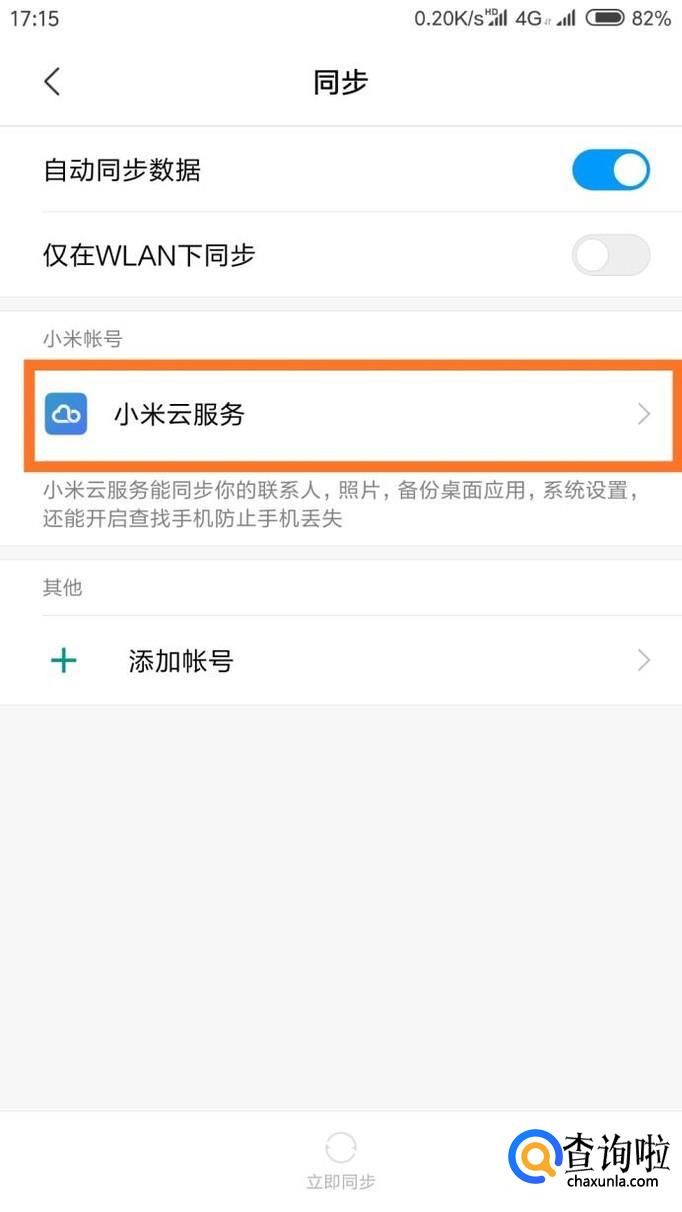 在账号设置中找到小米账号下面的‘同步‘按钮,然后在子菜单中点击进入‘小米云服务‘。