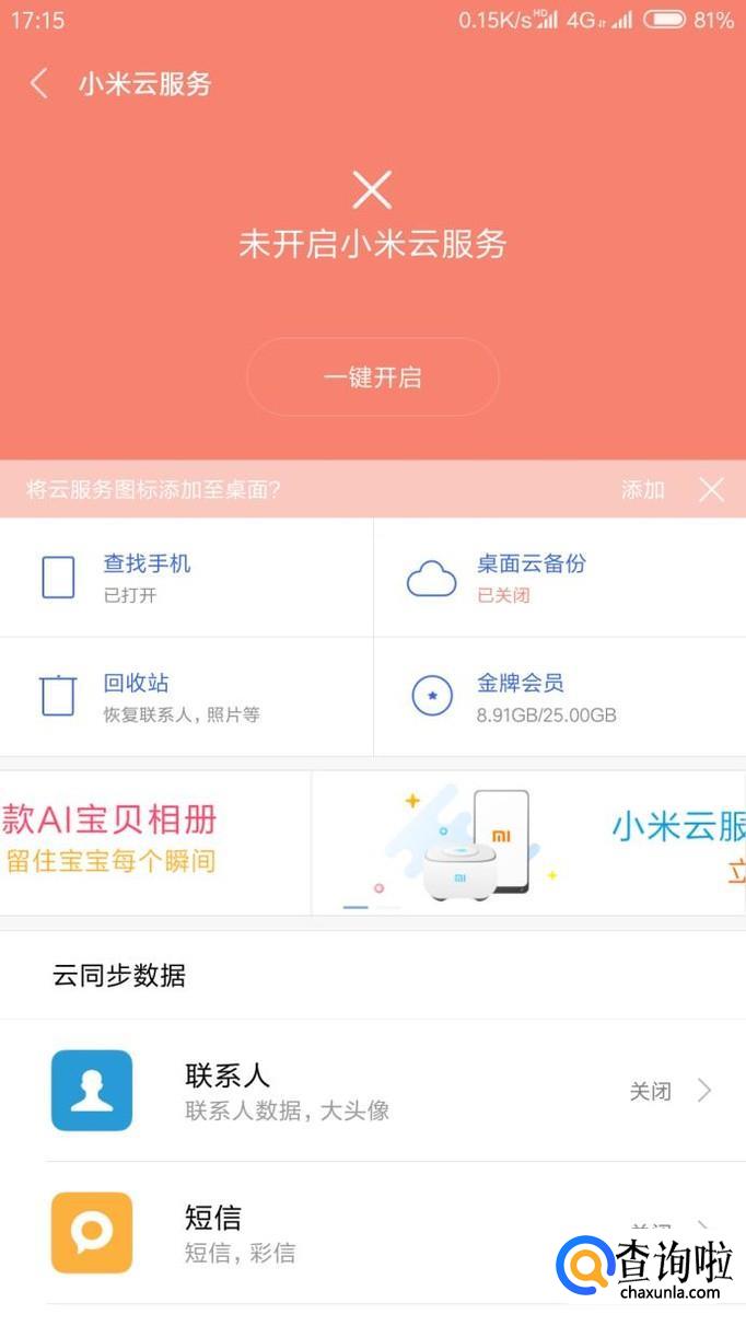 使用小米云备份进行数据备份以及恢复的方法