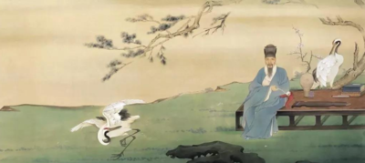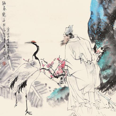 林逋的脾气非常古怪,既不娶妻,更不要孩子,但是他却特别喜爱梅花和仙鹤。他常常四处寻访,只要遇到好的品种,不管多贵,他都会买回来。闲暇的时候,他便一个人在院子里赏梅玩鹤。他有只仙鹤叫“鸣皋”,每次客人来访的时候,如果林逋不在,童子便打开笼子,“鸣皋”便会跑去给林逋报信,林逋看见“鸣皋”便回来会见客人。周围的人知道后,都说林逋“梅妻鹤子”。