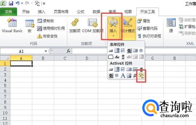 进入开发工具之后,我们点击插入,然后点击最后一个;
