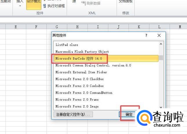 然后我们找到Microsoft BarCode 控件14.0,我们点击选中它,之后点击确定;